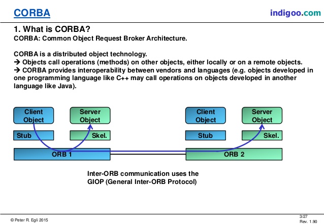 The Common Object Request Broker Architecture (CORBA) is a standard defined by the Object Management Group (OMG) designed to facilitate the communication of systems that are deployed on diverse platforms. CORBA enables collaboration between systems on different operating systems, programming languages, and computing hardware. CORBA uses an object-oriented model although the systems that use the CORBA do not have to be object-oriented. CORBA is an example of the distributed object paradigm.